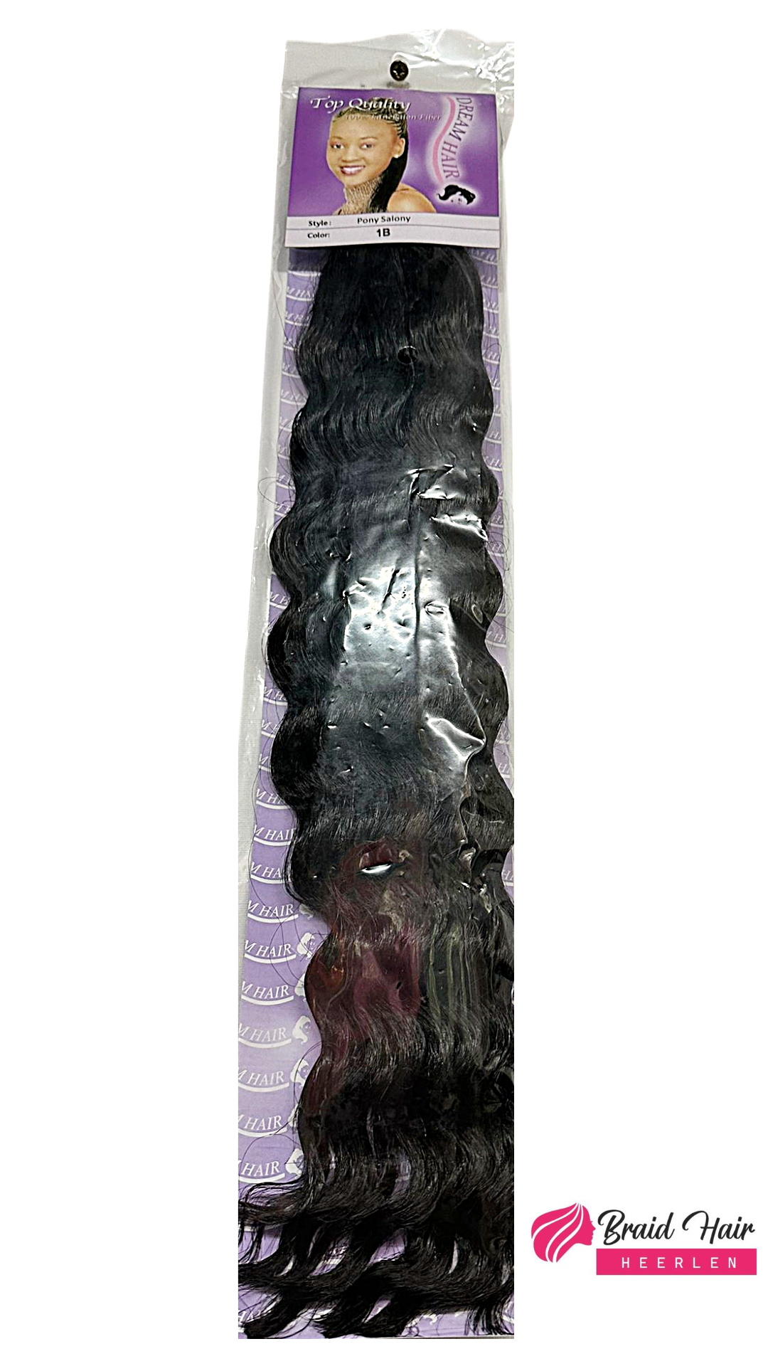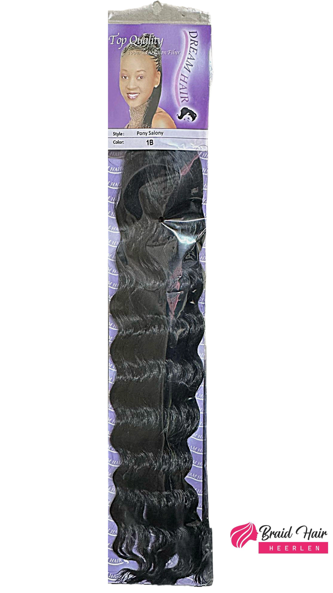 Deze Dream Hair Crochet – Pony Salony 18" in kleur 1B (natuurlijk zwart) geeft u in een handomdraai een volle en natuurlijke look. Dankzij de kant-en-klare krullen kunt u uw haar eenvoudig inzetten met een crochet needle, zonder dat u uren hoeft te vlechten.